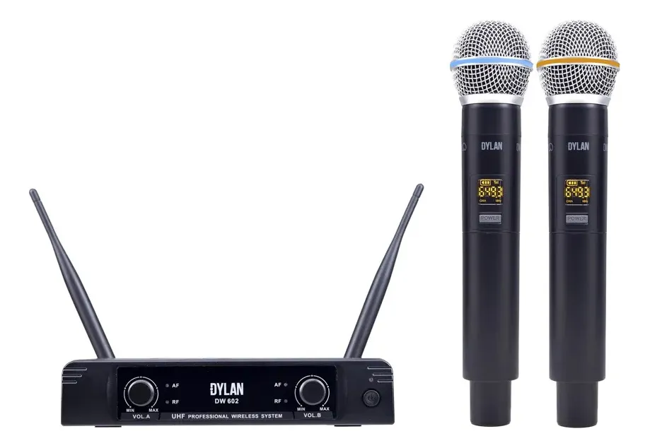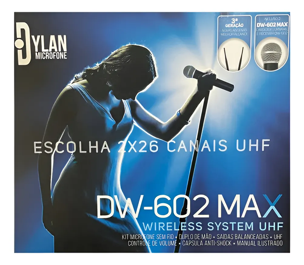 DW-602 MAX é um sistema sem fio duplo com microfones de bastão com cápsula dinâmica cardióide excelente para captação de voz, seja cantada ou falada, ideal para pequenos shows, apresentações, cultos ou palestras.